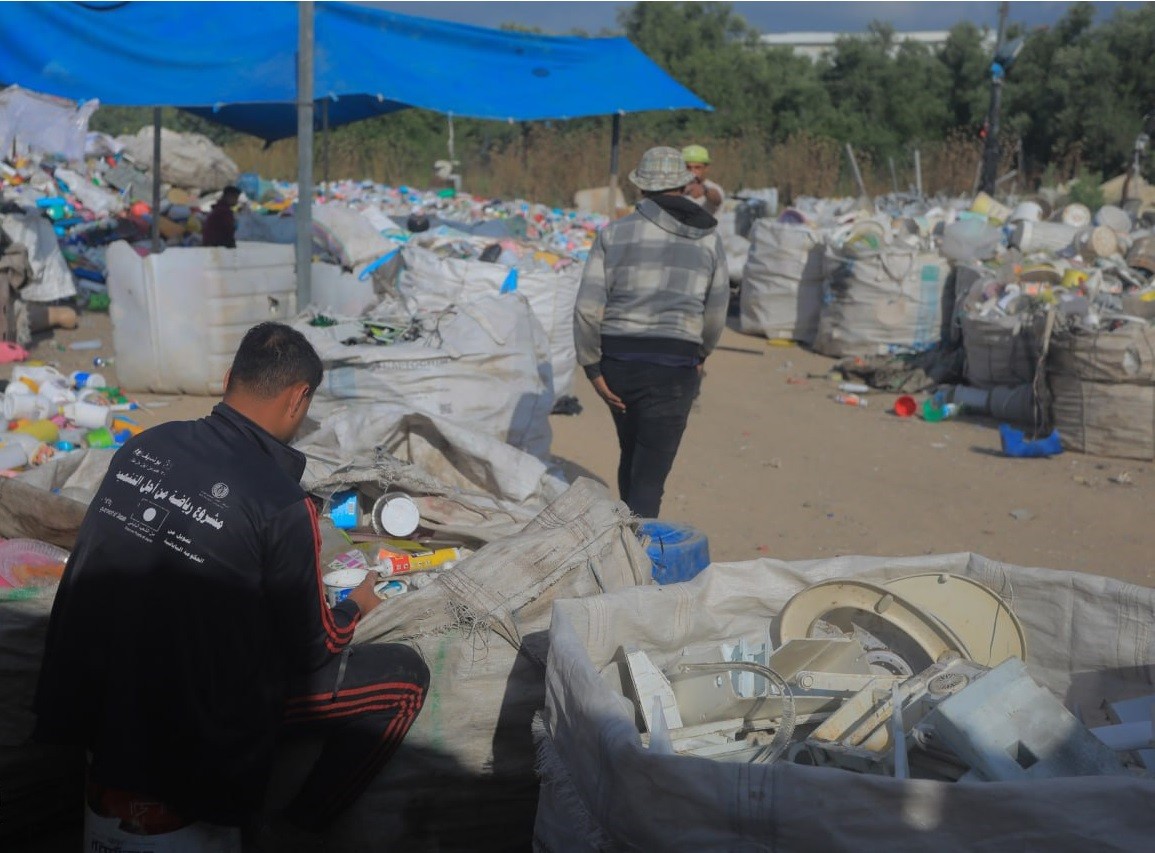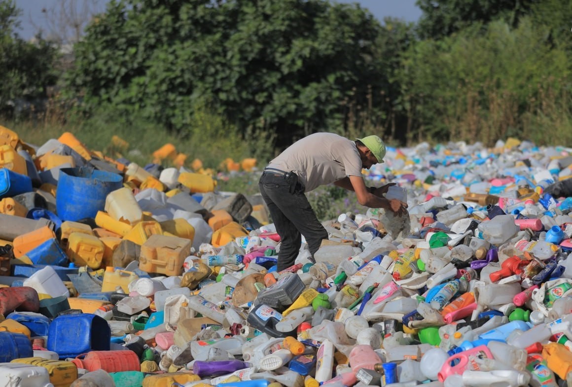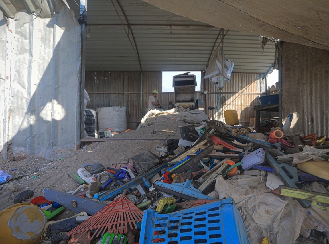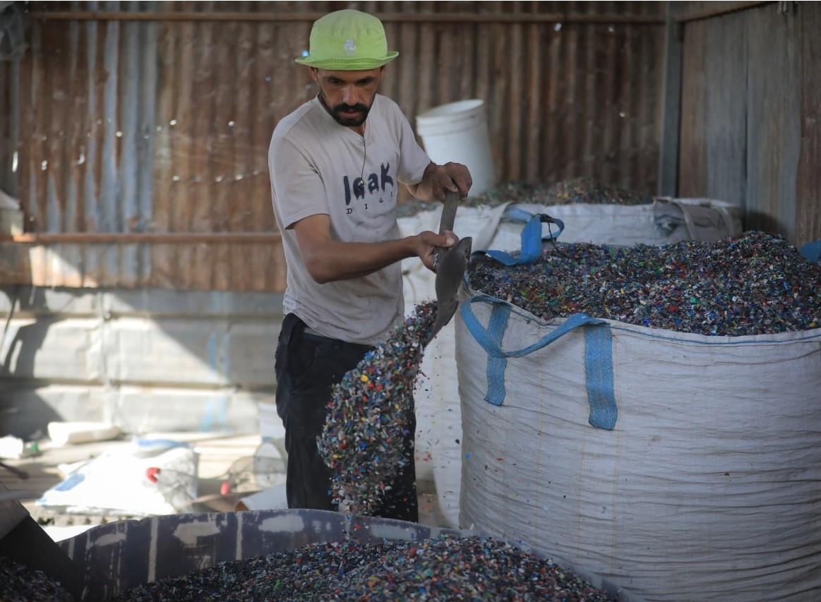 إعادة تدوير البلاستيك في مصنع شرق مخيم جباليا شمال قطاع غزة.