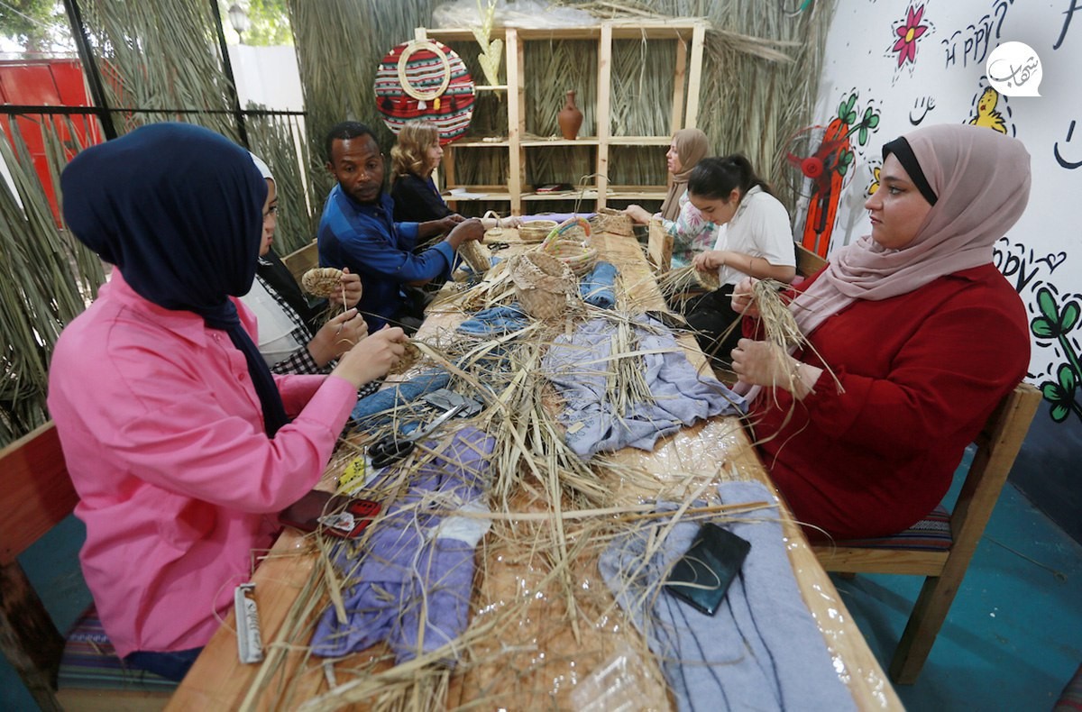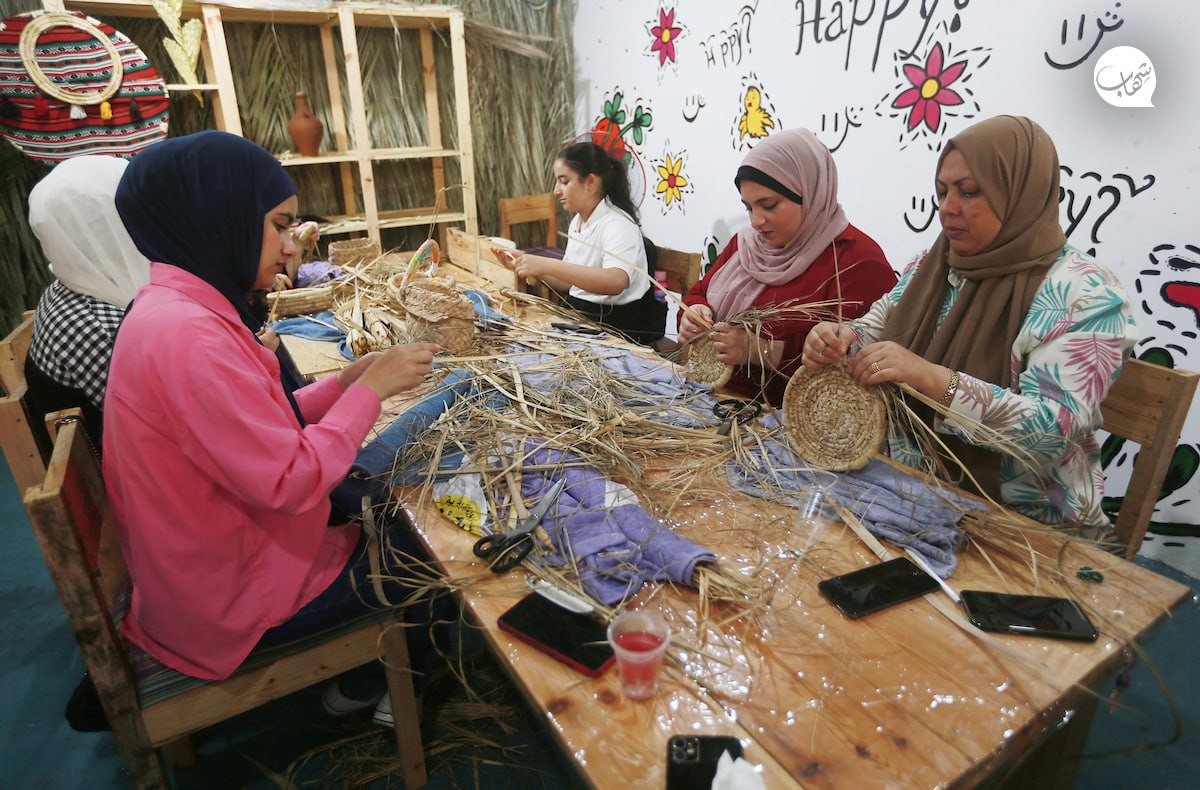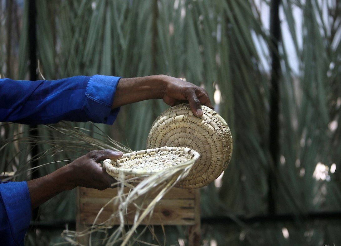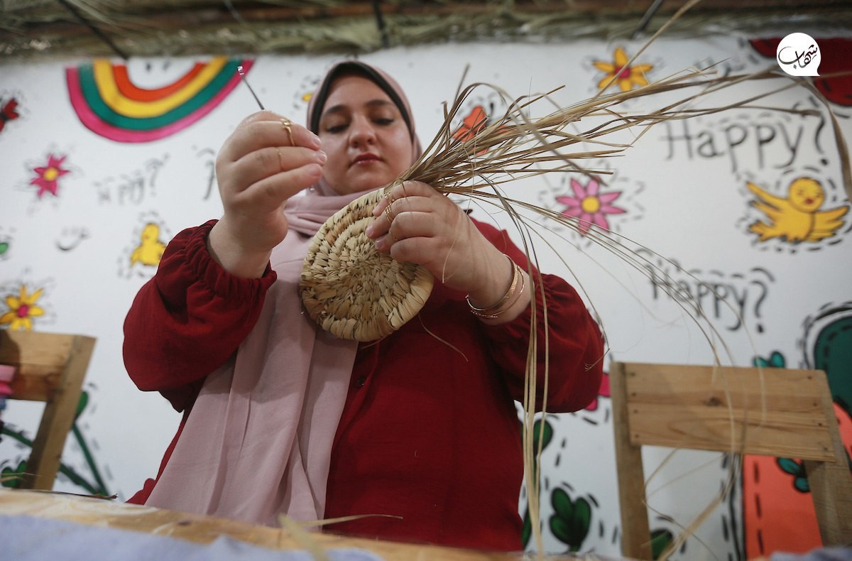 صناعة سلال القش يدويًا في غزة.