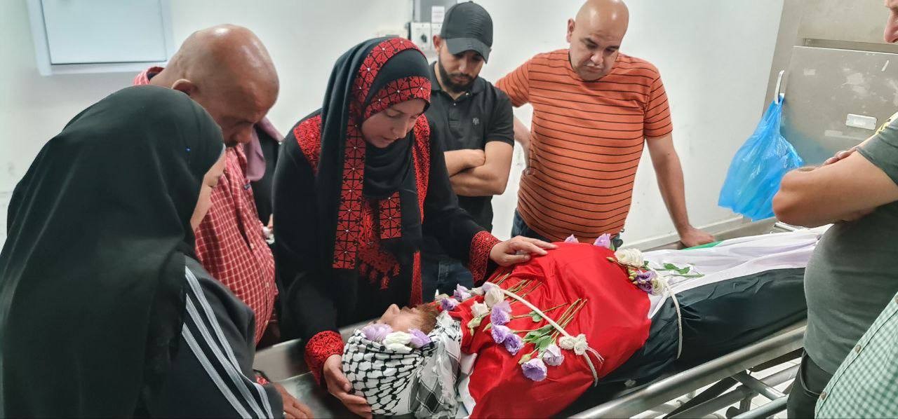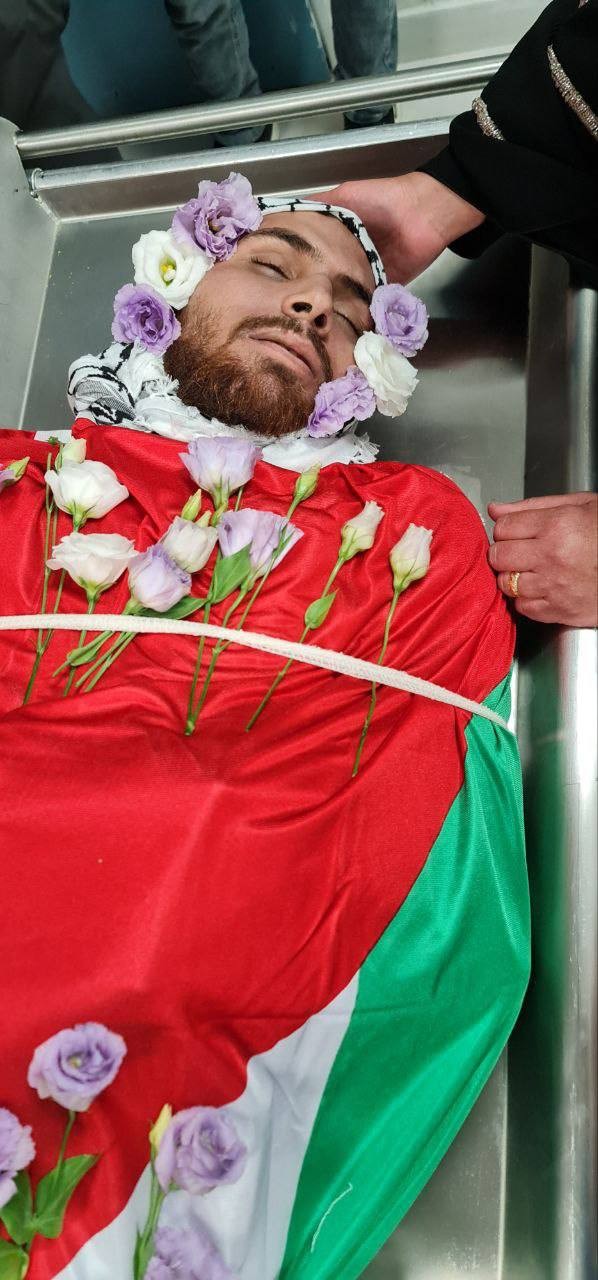 وداع الشهيد عبد الجواد حمدان قبيل تشييعه في قرية عارورة برام الله