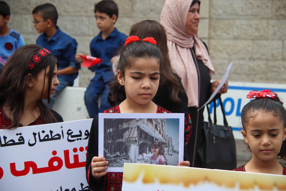 وقفة ضد الحصار في يوم الطفل العربي أمام مقرUNDP في مدينة غزة