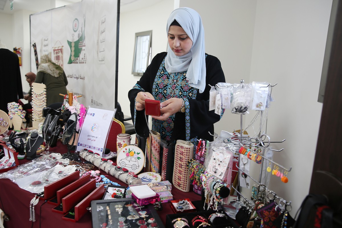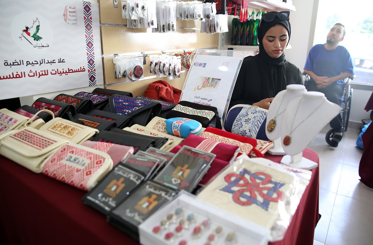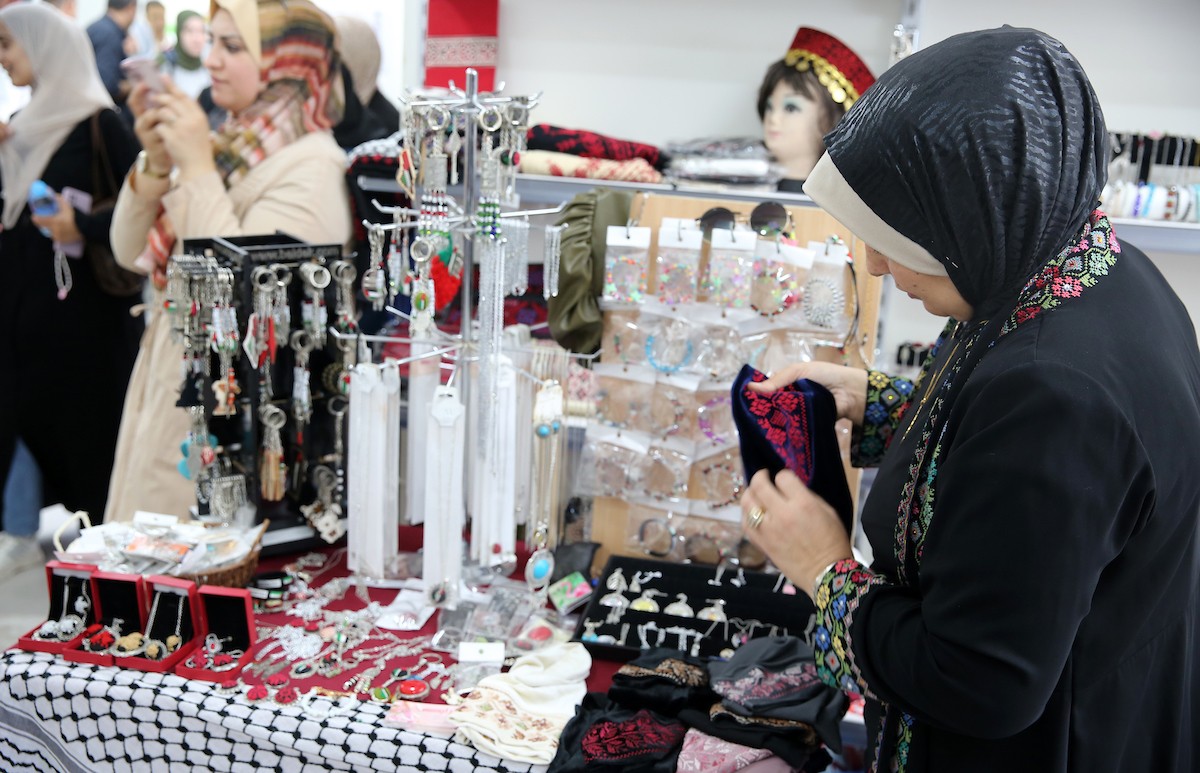 فلسطينيون يحضرون افتتاح البازار الخيري في مدينة غزة