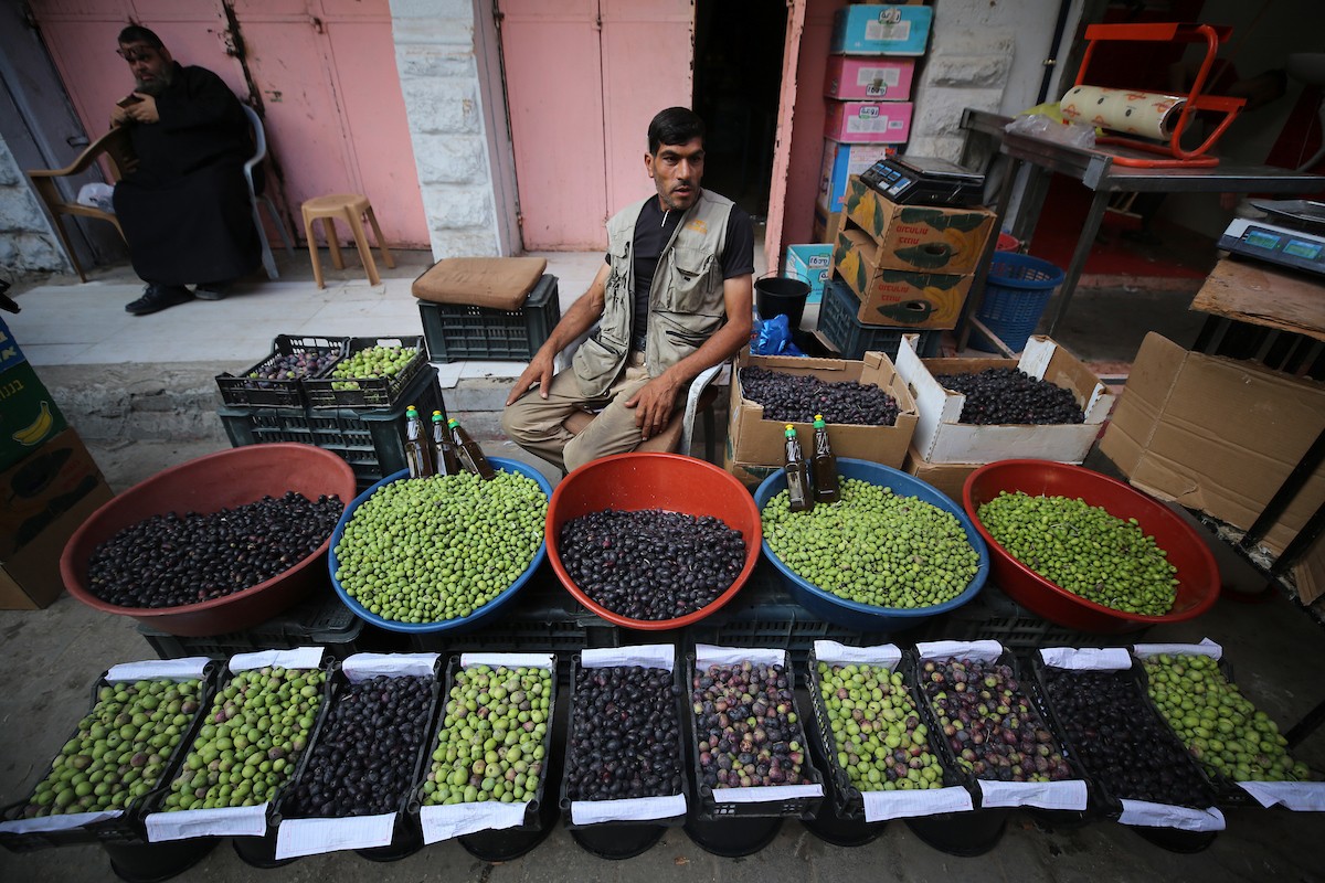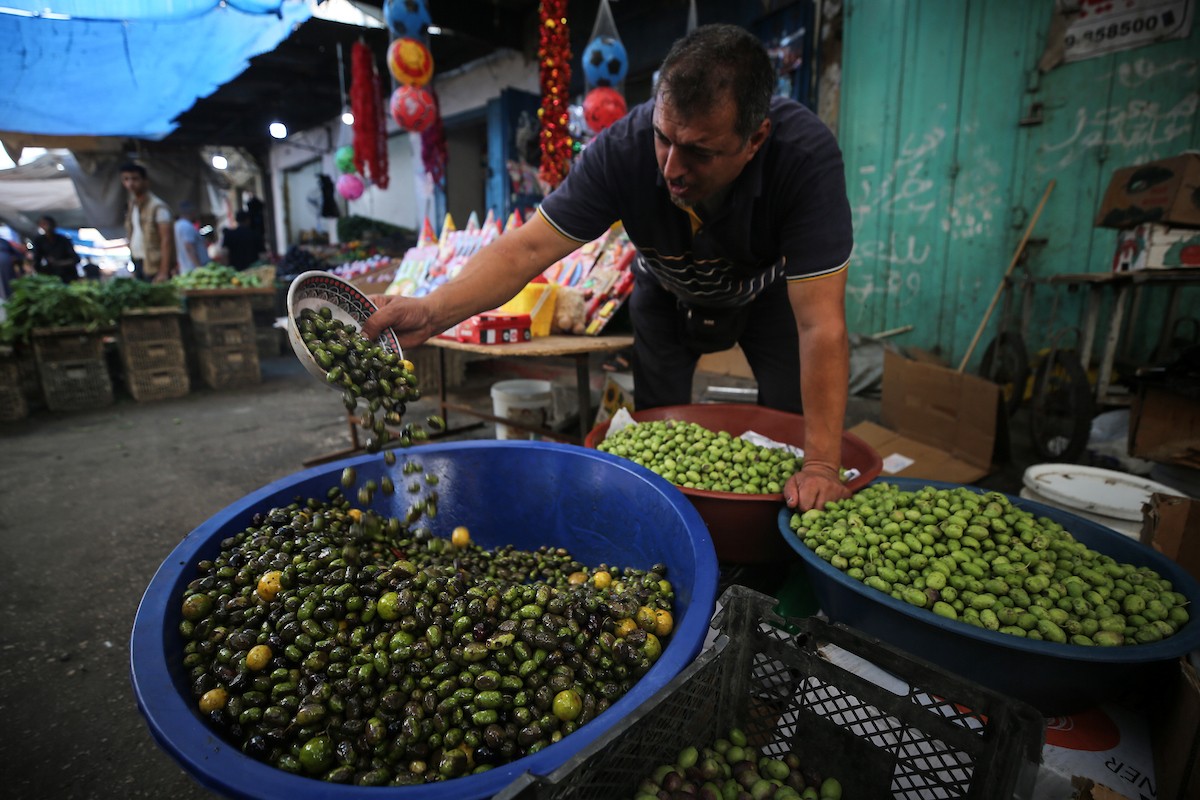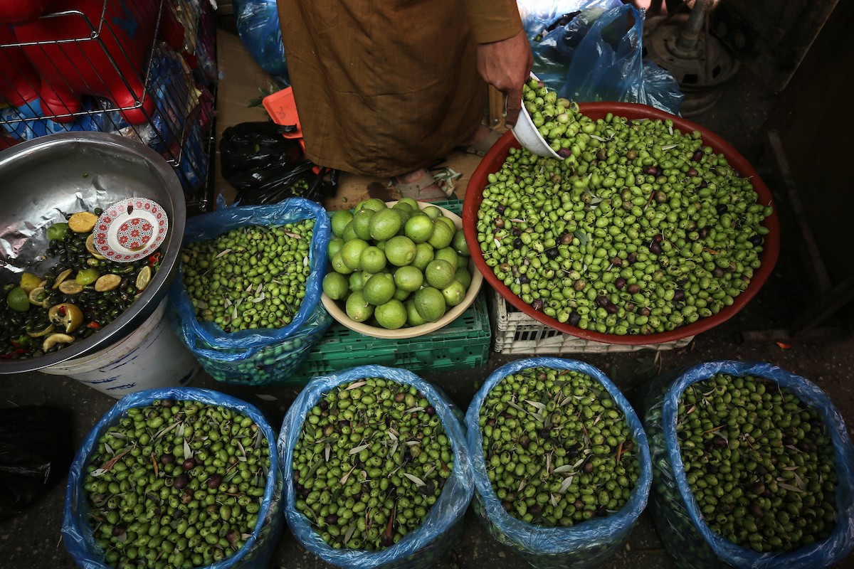 انواع مختلفة من الزيتون في سوق الزاوية بمدينة غزة