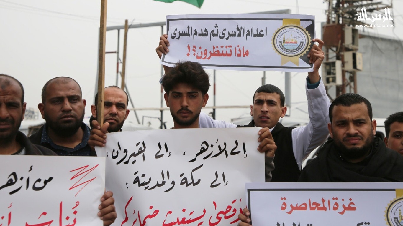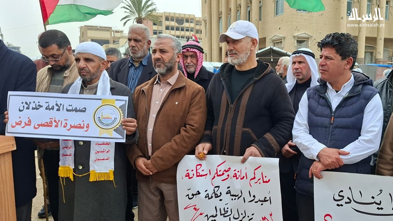 وقفة علماء غزة احتجاجاً على العدوان وإغلاق الأقصى