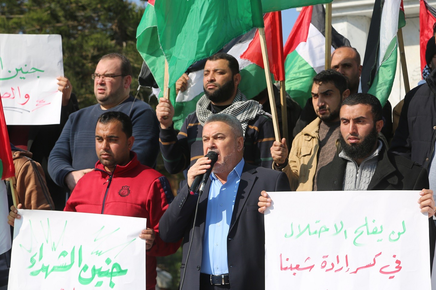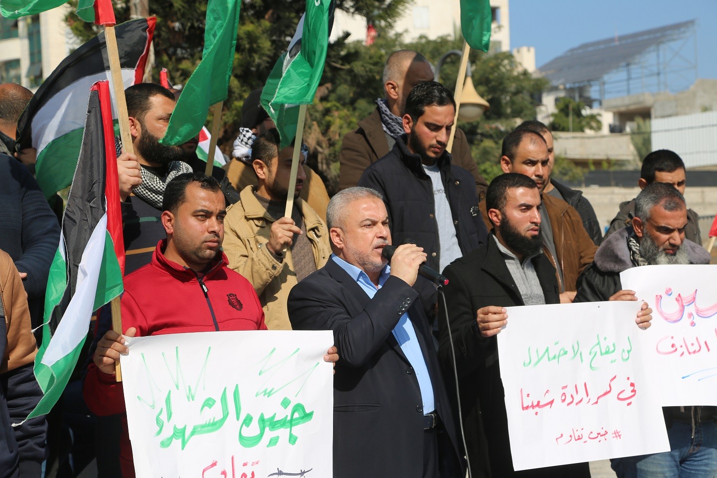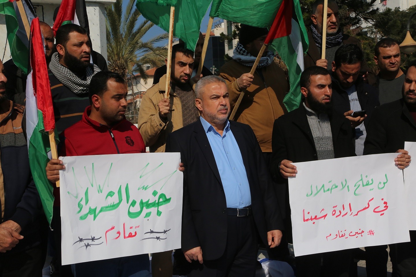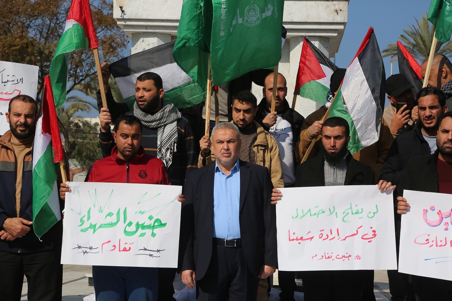 وقفة في ساحة الجندي المجهول في مدينة غزة تنديدا بمجزرة مخيم جنين صباح اليوم