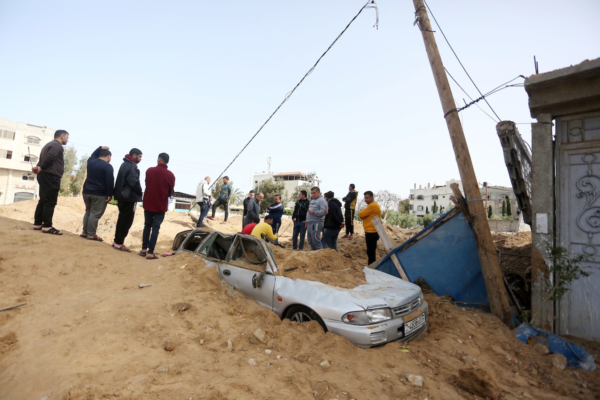 فلسطينيون يتفقدون أثار الدمار جراء القصف (الإسرائيلي) على غزة