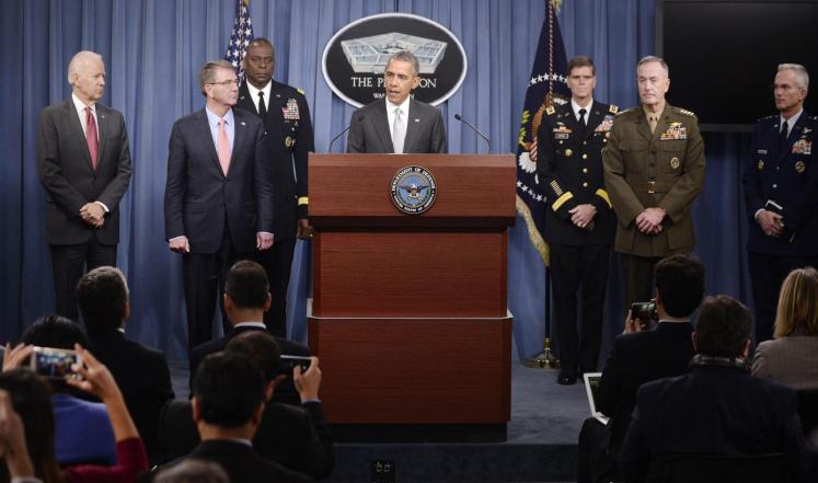وخلال إيجاز صحفي في مقر وزارة الدفاع الأميركية الاثنين عقب اجتماع مع مجلس الأمن القومي للوقوف على تطورات الحرب ضد تنظيم الدولة أشار أوباما إلى أن المعركة ضد التنظيم لا تزال صعبة، لذلك طالب بمواصلة الحملة بوتيرة أسرع.