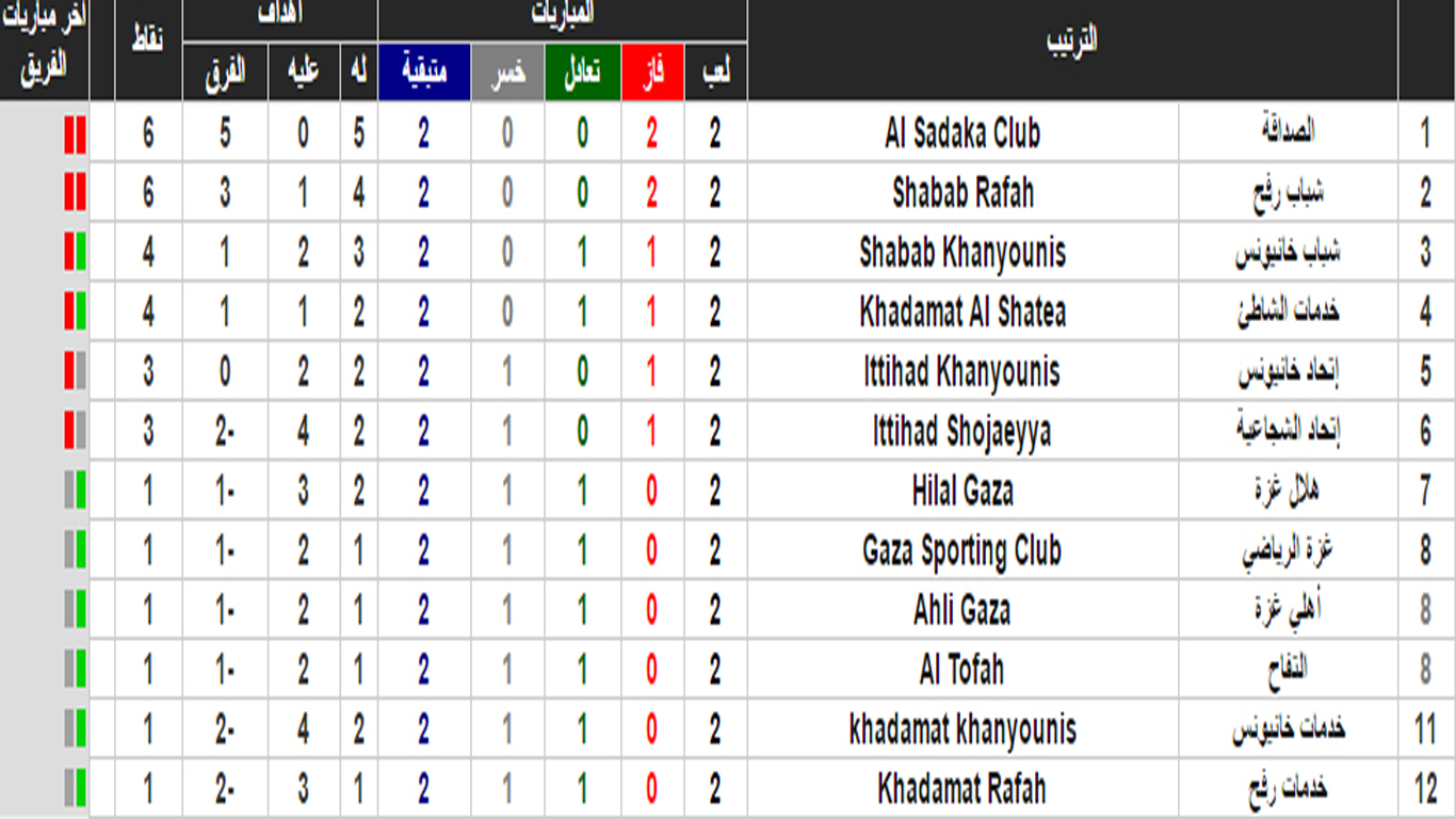 يشار إلى أن خدمات رفح تعادل في الأسبوع الأول مع خدمات الشاطئ (1-1), وسيلعب لقاءه الثالث في الدوري مع الأهلي السبت المقبل.