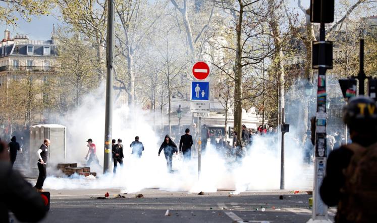 ورفع المتظاهرون لافتات يصف بعضها الشرطة الفرنسية بالقاتلة، أو يطالب بالعدالة للضحية، وألقى بعض المحتجين زجاجات وبيضا وفاكهة على قوات مكافحة الشغب، التي ردت بقنابل الغاز المدمعة، وتواصلت المواجهات نحو ساعة.