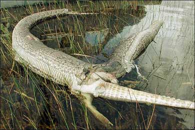 وكانت المعركة قد وقعت حينما أقدم ثعبان يقارب طوله الأربعة أمتار على محاولة ابتلاع تمساح يقارب المترين، وكانت ساحة المعركة هي مستنقعات فلوريدا.