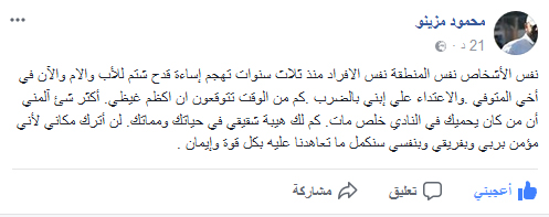 وقال المزين عبر صفحته على موقع التواصل الاجتماعي "فيس بوك", إن مجموعة من الأشخاص أساءت له بالسباب والشتائم, واعتدت على نجله, عقب خسارة خدمات رفح أمام الشباب (0-1).