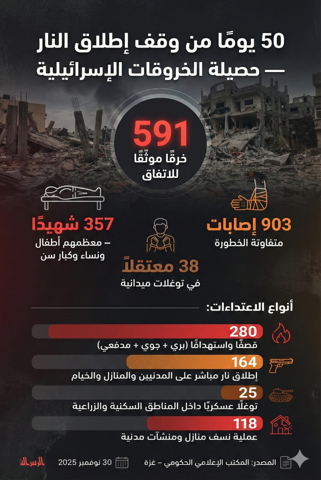 50 يومًا من وقف إطلاق النار — حصيلة الخروقات الإسرائيلية