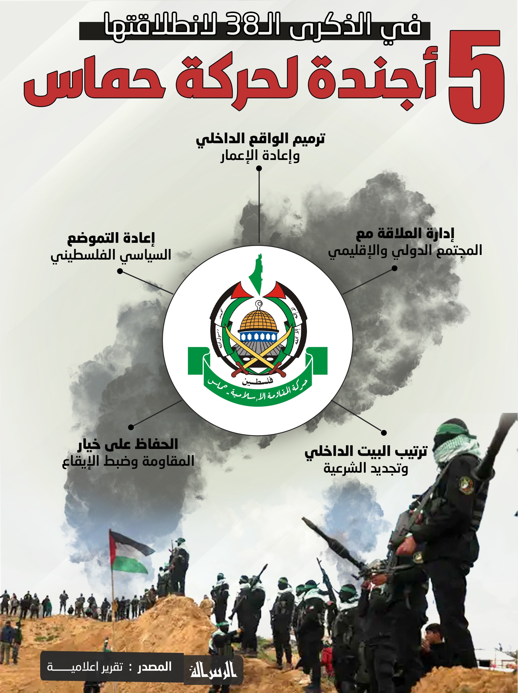5 أجندة لحركة حماس في الذكرى الـ38 لانطلاقتها