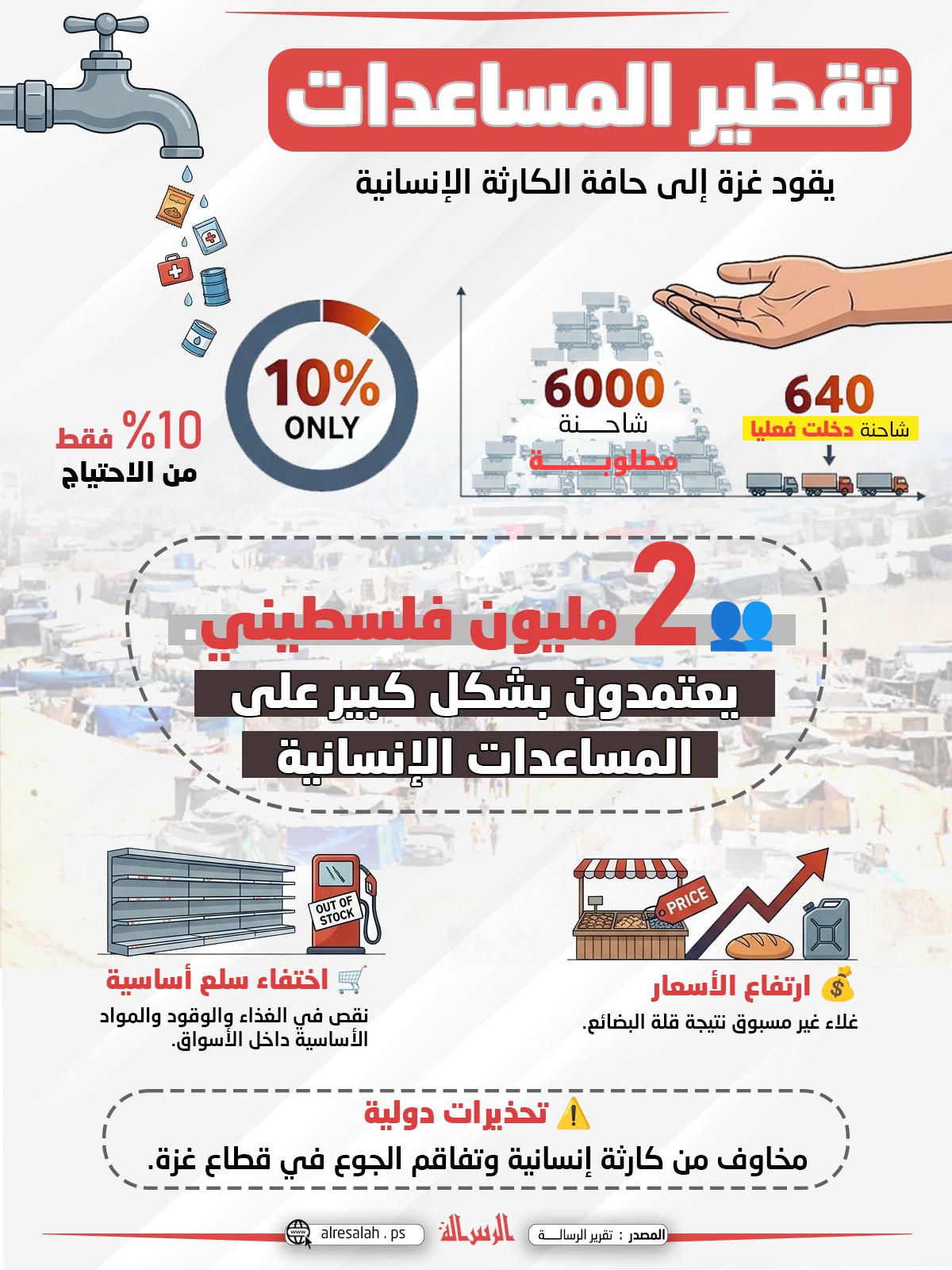 انفوجرافيك: تقطير المساعدات يقود غزة إلى حافة الكارثة الإنسانية