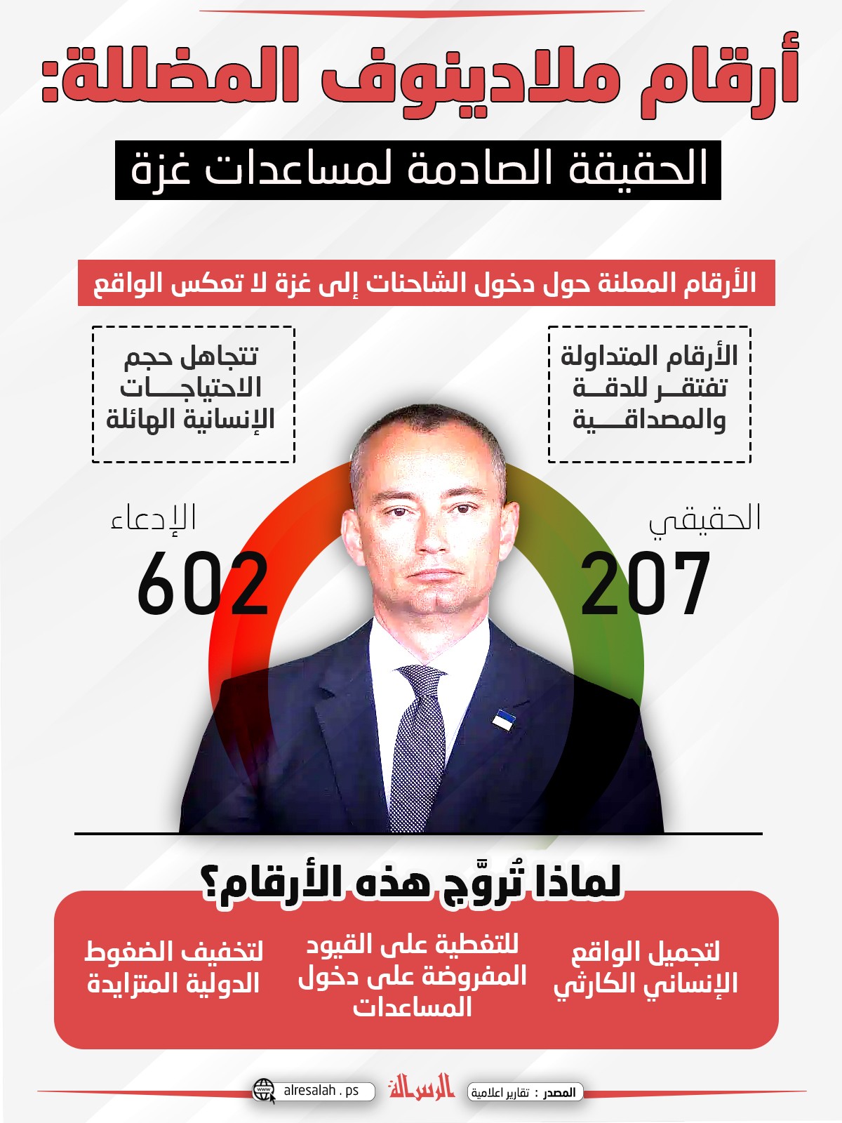 انفوجرافيك: أرقام ملادينوف المضللة: الحقيقة الصادمة لمساعدات غزة