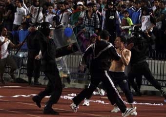 وقبل نهاية الوقت المحتسب بدل الضائع ب_ 3 دقائق فوجئ الجميع بنزول أحد مشجعي الأفريقي التونسي ابتهاجا باقتراب فريقه من التأهل، وعندها فقط نزل مشجعو الزمالك بأعداد ضخمة إلي الملعب وظهرت الاشتباكات مع الحكام والعناصر التونسية ورجال الأمن، وتحول ملعب ستاد القاهرة إلي ساحة للمعارك، لا يمكن التعرف علي هوية من يشتبك وهدفه، ومن يتدخل لفض الاشتباك ودور الأمن وغيره من الجهات في الاستاد.
