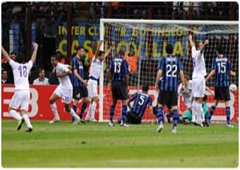 أصبح إنتر ميلان الإيطالي مهدداً بشكل كبير بالتنازل عن لقبه بعد سقوطه المهين على بِساط ملعبه الخاص أمام شالكه الألماني 2-5 يوم الثلاثاء في ذهاب الدور ربع النهائي من مسابقة دوري أبطال أوروبا لكرة القدم.