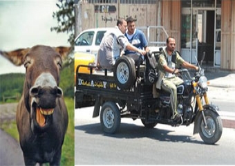 الابتسامة ارتسمت على وجه حمار أبو فتحي وزملائه الآخرين من حمير وحصن في الفترة الأخيرة وخصوصا بعد غلاء قطع غيار التوك توك وملاحقة حملات المرور الأخيرة لها.