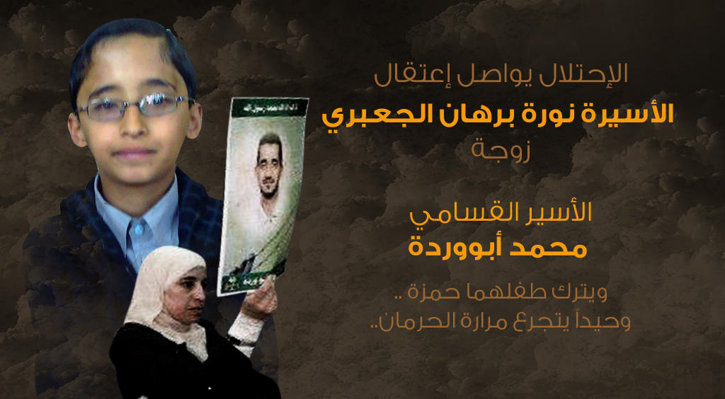 واعتقلت قوات الاحتلال والدة الطفل حمزة، نورا برهان الجعبري (34 عاماً) يوم الثلاثاء الماضي بعد مداهمة منزل عائلتها في مدينة الخليل، لتنضم إلى والده الأسير محمد عطية أبو وردة القابع في سجون الاحتلال منذ تاريخ 4112002، والمحكوم بالسجن 48 مؤبداً بتهمة الانتماء لكتائب الشهيد عز الدين القسام ومقاومة الاحتلال.