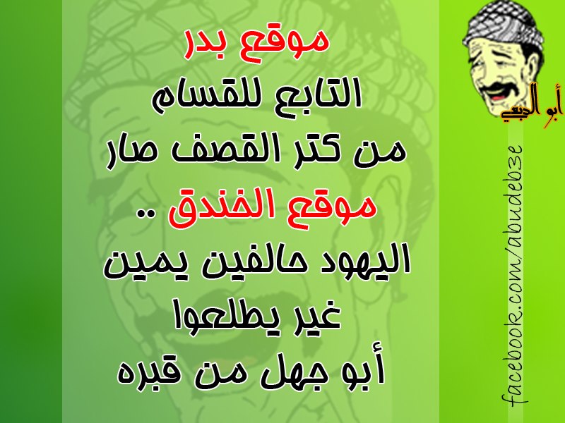 وتمثلت تلك النكات العديدة واليومية بـ "موقع بدر التابع للقسام من كتر القصف صار موقع الخندق .. ايهود حالفين يمين غير يطلعوا أبو جهل من قبره" .. وأخرى دونت فيها "نتنياهو :لم أكن أعرف أن حماس لا تعرف الله .. من يقصف القدس لا يعرف الله !! واد يا مؤمن .." .