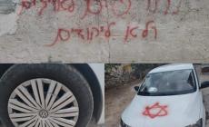 مستوطنون يعطبون إطارات ويخطون شعارات شمال سلفيت