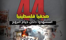 <span class="text-danger">انفوجرافيك: </span>44 صحفيا فلسطينيا استشهدوا داخل خيام النزوح في قطاع غزة، من بين 254 شهيدا من العاملين في الحقل الإعلامي منذ بدء حرب الإبادة انفوجرافيك